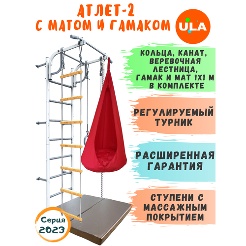 Атлет-2 с матом и гамаком, цвет пастель/ красный