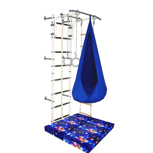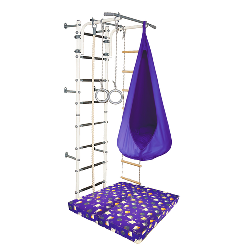 Комплектация:- шведская стенка- регулируемый турник- кольца гимнастические- канат х/б- веревочная лестница- мат гимнастический 1х1 м, толщиной 10 см, цвет серый- новинка! Гамак в новом насыщенном цвете понравится