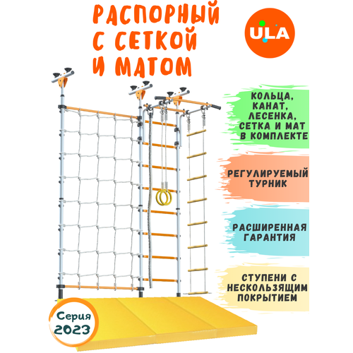 Комплект "Пристенный с сеткой для лазания" и матом 1,5х1, цвет Сине-желтый
