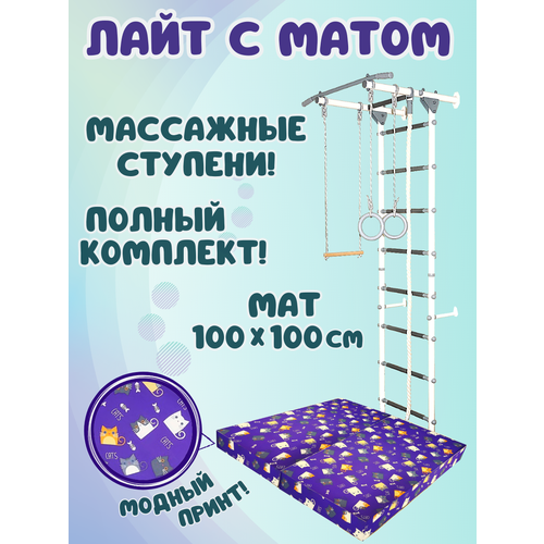 Комплекс Пристенный Лайт с матом 1х1, цвет пастель/фиолет коты
