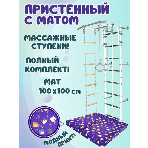 Пристенный комплекс с матом 1х1 м, цвет пастель/коты фиолет