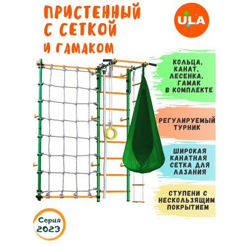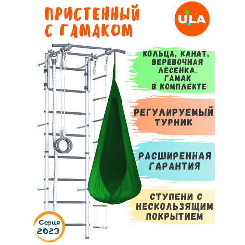Шведская стенка Пристенный с гамаком, цвет Пастель / зеленый