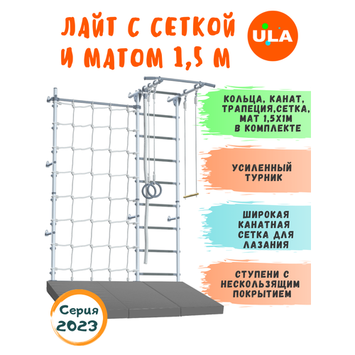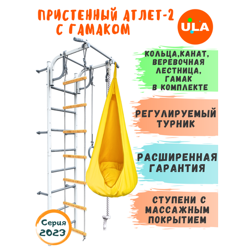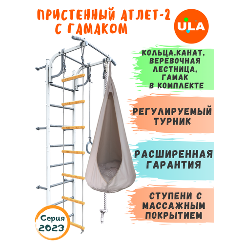 белый, серый, голубойПопулярная модель шведской стенки для детей в комплекте с гамаком и матом!Данную серию выгодно отличает наличие противоскользящего покрытия ступеней с микромассажным эффектом. Турник в модели регулируется по высоте.