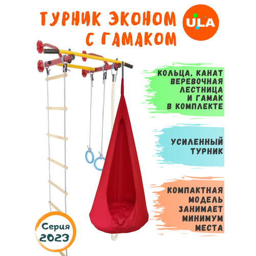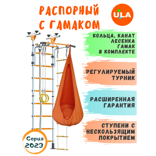 Комплектация:- шведская стенка- регулируемый турник- кольца гимнастические- канат х/б- веревочная лестница- мат гимнастический 1х1 м, толщиной 10 см, цвет серый- новинка! Гамак в новом насыщенном цвете понравится