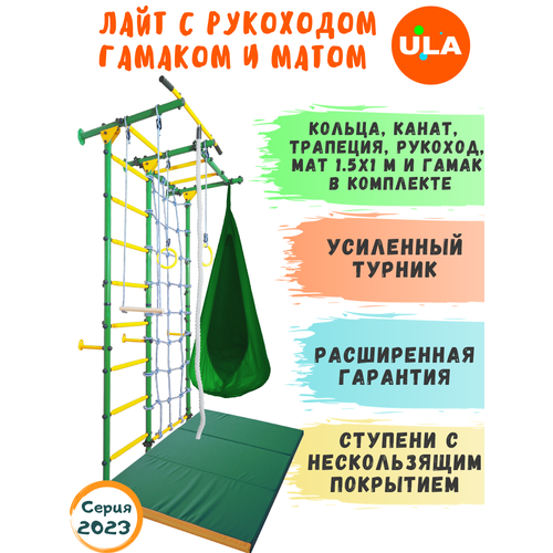 Комплект Лайт с рукоходом, матом 1,5х1 и гамаком, цвет зелено-желтый