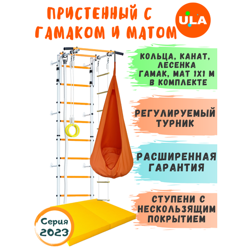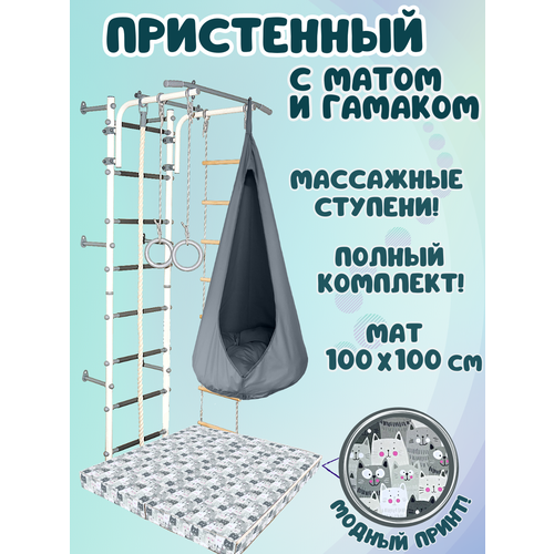 белый, серый, красныйПопулярная модель шведской стенки для детей в комплекте с гамаком и матом!Данную серию выгодно отличает наличие противоскользящего покрытия ступеней с микромассажным эффектом. Турник в модели регулируется по высоте.