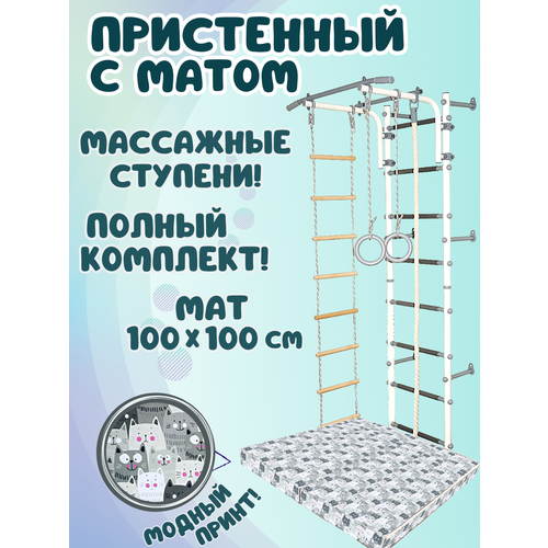 Пристенный комплекс с матом 1х1 м, цвет пастель/коты серые