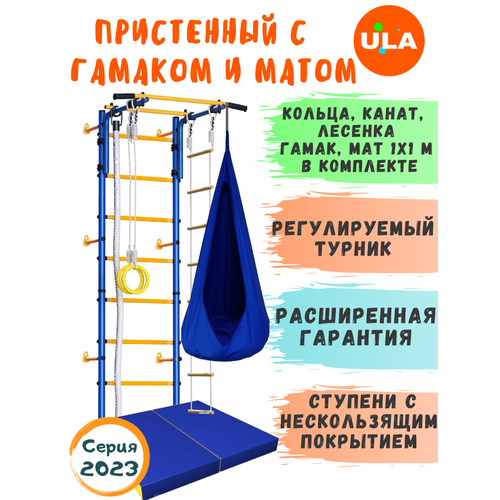 Комплект "Пристенный" с матом 1х1 и гамаком, сине-желтый