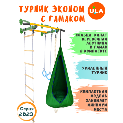 Турник Эконом с гамаком, цвет Зелено-желтый