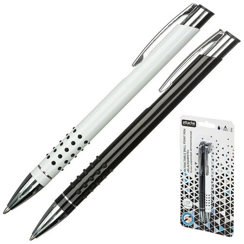 Ручка шариковая Attache Selection Black and White синий. ст, авт, 2шт/бл.