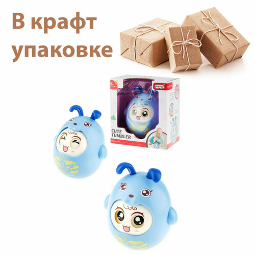 Неваляшка зайчик с ушками в подарочной крафт упаковке