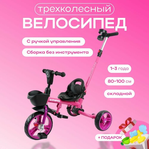 Складной велосипед детский трехколесный MAXISCOO Dolphin Розовый 2023 Прямой Руль с мягким кармашком, Сиденье с Ручкой для Переноски, Корзинка на Руле