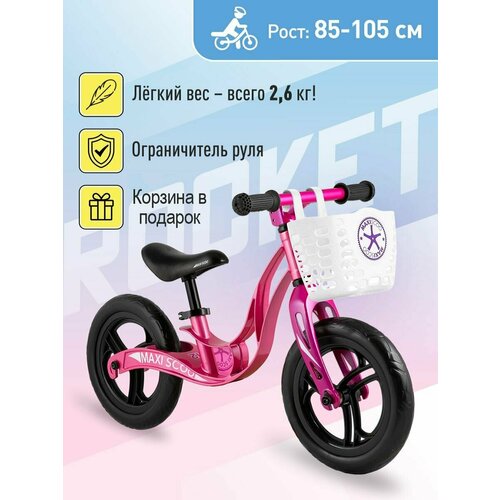 Беговел детский Maxiscoo Rocket, Стандарт, Колеса ЭВА 12", Розовый