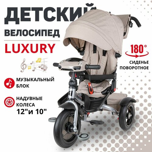 Велосипед трехколесный детский Tech Team LUXURY с поворотным сиденьем, с ручкой для родителей, велосипед-коляска, складная крыша, 3 угла наклона спинки, надувные колеса 12 и 10 дюймов