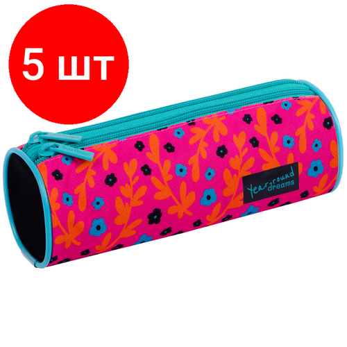 Комплект 5 шт, Пенал-тубус 2 отделения, 210*70 Berlingo "Pink pattern", полиэстер