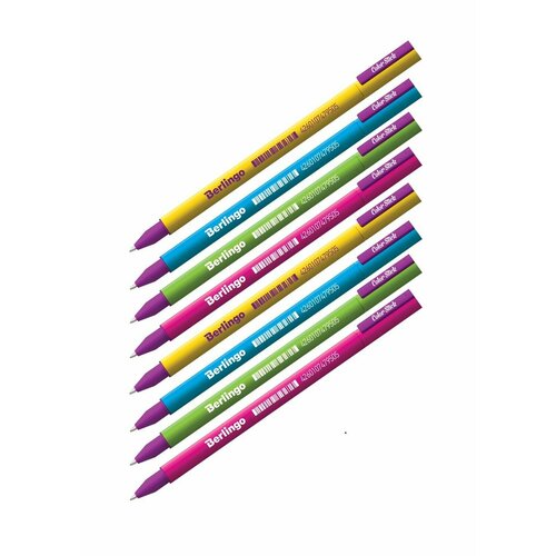 Набор из 8 шт. - Ручка гелевая Berlingo "Color Stick" черная, 0,5 мм, корпус ассорти