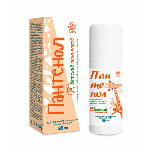 Пантенол пена-спрей детский с экстрактом подорожника/череды/ромашки/шалфея 58 мл