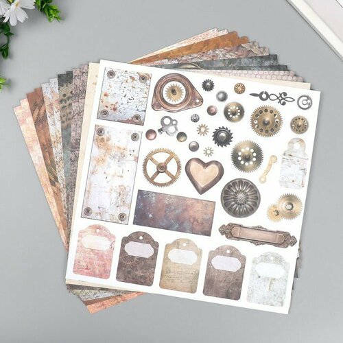 Бумага для скрапбукинга 30х30 см "Стимпанк", двусторонняя, 12 листов, 12 дизайнов, 180 г/м2 (комплект из 6 шт)