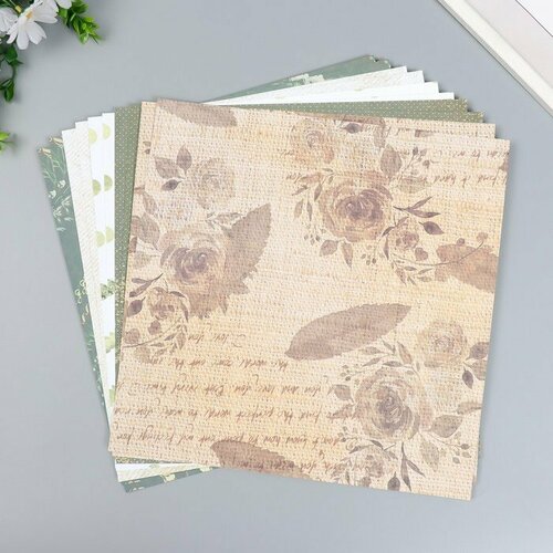 Бумага для скрапбукинга 30х30 см "Нежность природы", комплект 5 шт, двусторонняя, 12 листов, 12 дизайнов, 180 г/м2, остров сокровищ, 662771