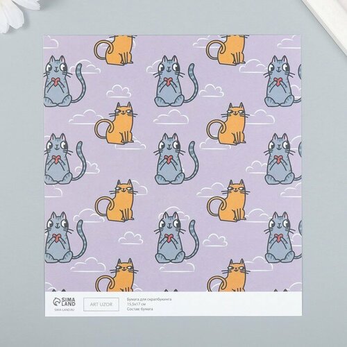Бумага для скрапбукинга "Котики" плотность 180 гр 15,5х17 см