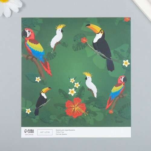 Бумага для скрапбукинга "Экзотические птицы" плотность 180 гр 15,5х17 см