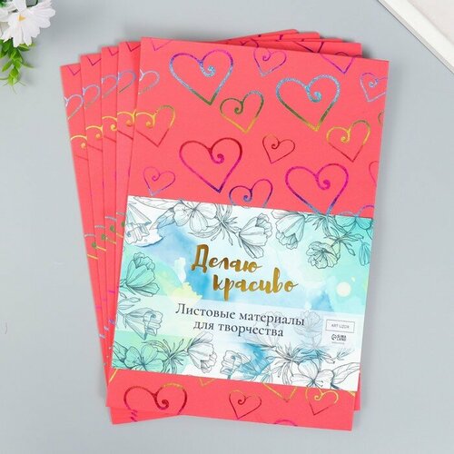 Фоамиран голография "Изогнутые сердца на красном" 2 мм формат А4 набор 5 листов