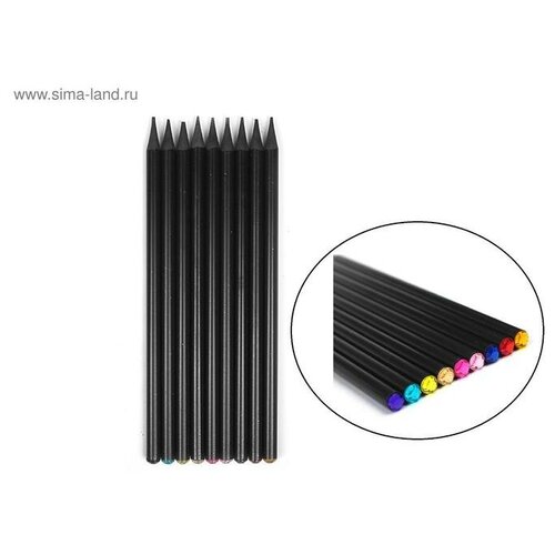 Карандаш чернографитный твёрдость НВ, корпус чёрный, заточенный, со стразой из акрила, микс