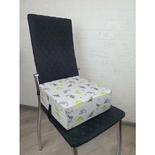 Сиденье бустер на стул, сидушка подушка "Бустер" Дино киндер темно-серый/зеленый