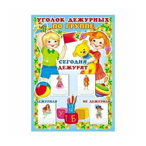 Уголок дежурных по группе с карточками А3. Мальчик и девочка