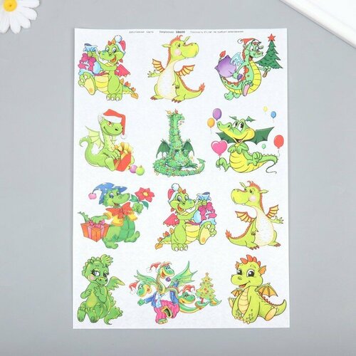 Декупажная карта "Зелёные дракончики" плотность 45г/м2, формат А4