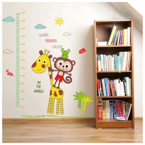 Наклейка пластик интерьерная ростомер "Жираф и обезьянка" 60х90 см