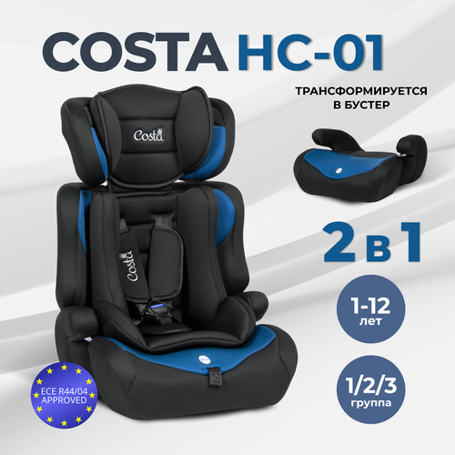 Детское автокресло Costa HC-01, группа 1/2/3, трансформируется в бустер, от 1 до 12 лет, от 9 до 36 кг