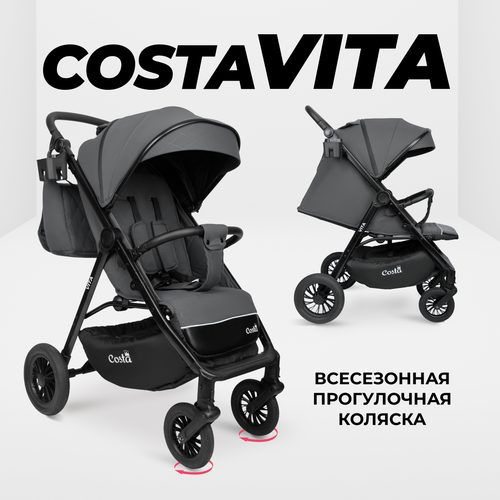 Коляска прогулочная складная всесезонная Costa Vita, графит