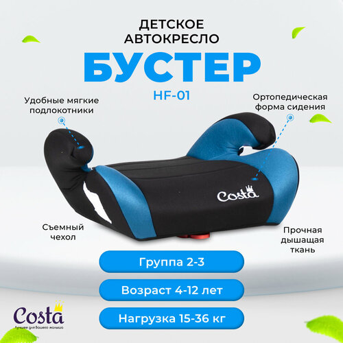 Детское автокресло бустер Costa HF-01, группа 2 и 3, от 4 до 12 лет, вес от 15 до 36 кг, цвет черно-синий
