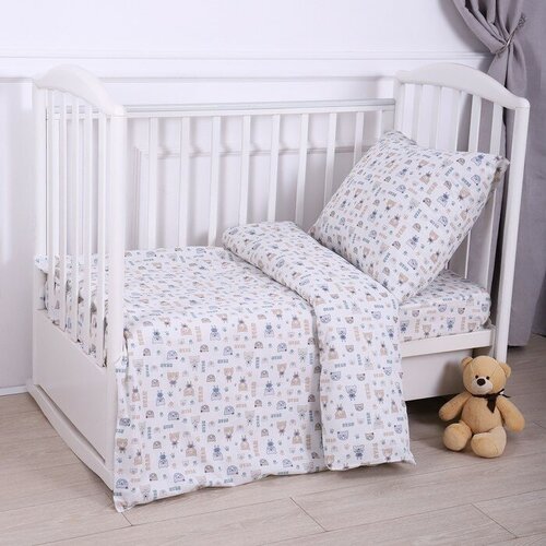 Детское постельное бельё BABY "Лесная сказка", 112х147 см, 110х150 см, 60х60 см, бязь 142 гр/м голубой