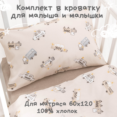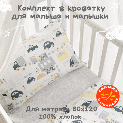 Детское постельное белье для новорожденных из натурального 100% хлопока, наволочка 40х60 1 шт, пододеяльник (размер 110х140) 1 шт. ...