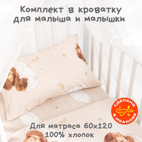 Детское постельное белье для новорожденных из 100% хлопка от торговой марки Ночь Нежна производство г. Иваново. Комплектация ясельного комплекта:- пододеяльник 140х110 см, с прорезью по нижнему краю изделия.- простыня 140х110 см, простынь без резинки, подойдет на овальный и прямоугольный матрас 60х120 см.- наволочка 40х60 см-1 шт, с клапаном 10 см. Если вы ищите качественный комплект постельного белья для малыша, то хлопковый комплект будет идеальным вариантом. Бязь - это ткань, изготовленная из натурального хлопка, которая обладает высокой прочностью и мягкостью, ткань приятная на ощупь, не скользит и не электризуется. Изделия полностью гипоаллергенны, поэтому их рекомендуют детям, беременным женщинам и аллергикам. Ткань дышит при этом впитывает влагу, сохраняя тепло. КПБ идеально подойдет как для лета, так и для зимы, обеспечивая Вашему ребенку комфортный сон. Наше предприятие производит ткани, используя современные технологии и гарантируя их высокое качество, а сама продукция сертифицирована и соответствуе
