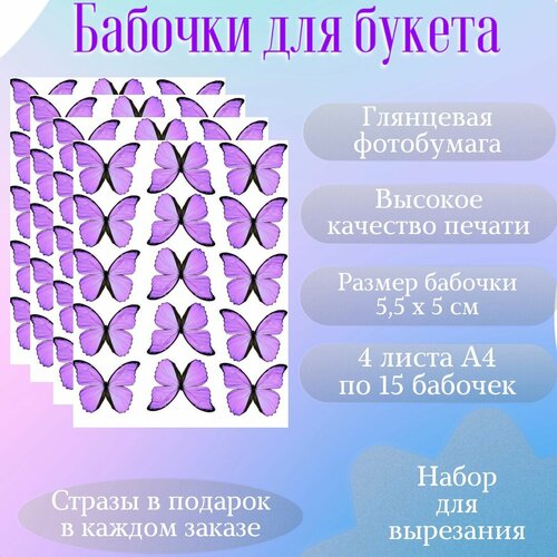 Бабочки сиреневые на глянцевой плотной бумаге для вырезания и создания букета из бабочек и композиций