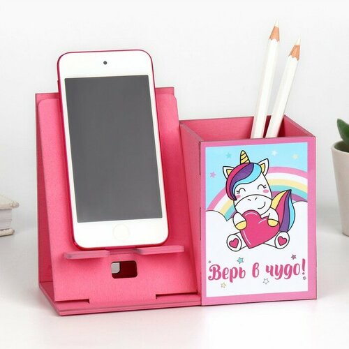 Органайзер для канцелярии "Единорог с сердечком" розовый замок