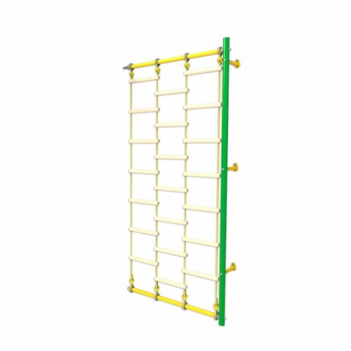 Дополнительная секция с деревянной сеткой для шведской стенки, турник для детского спортивного комплекса зеленый-желтый
