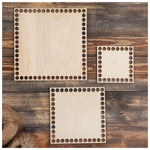 Набор заготовок для вязания "Квадрат", донышко фанера 3 мм (3 в 1), 10/15/19.5 см, d=9мм