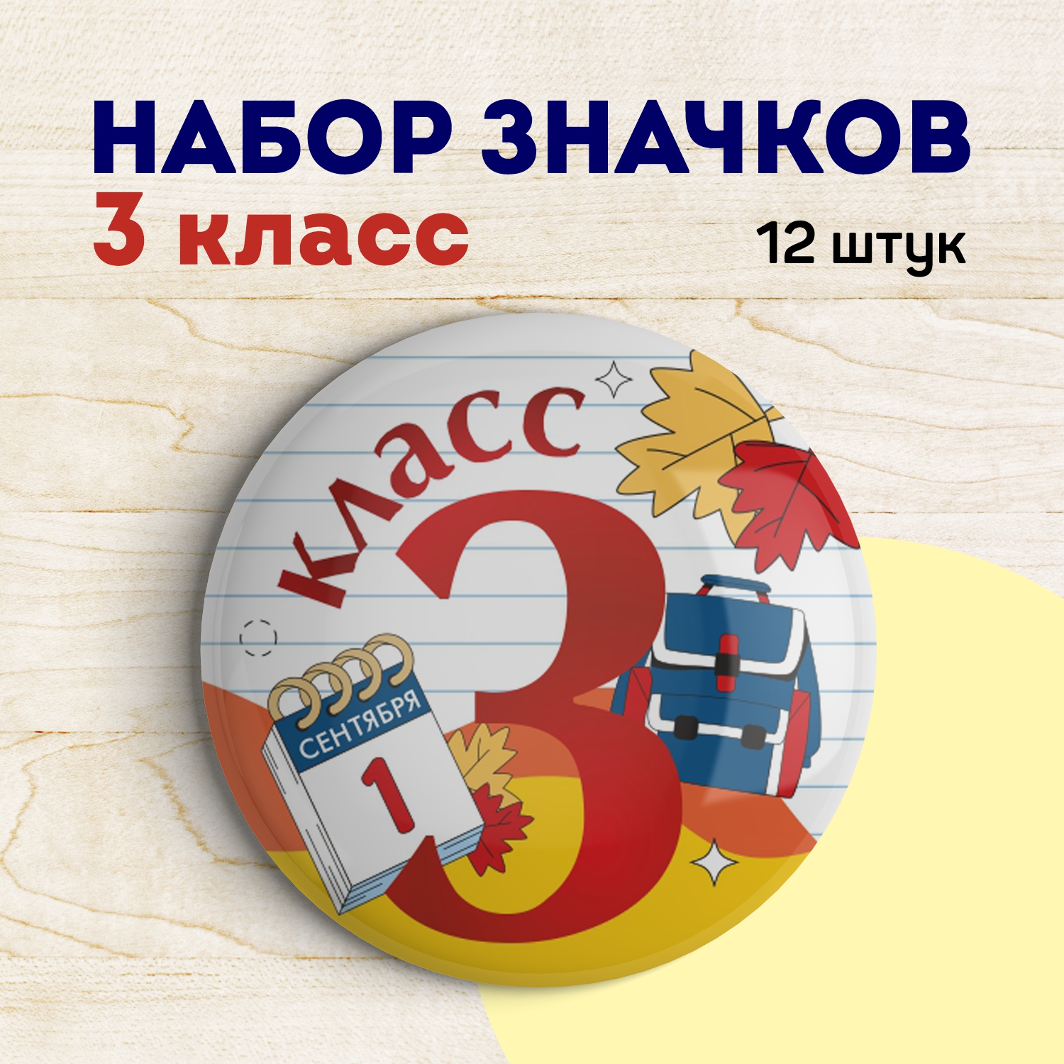 Набор значков Выручалкин, 3 класс, zn006, 12 шт.