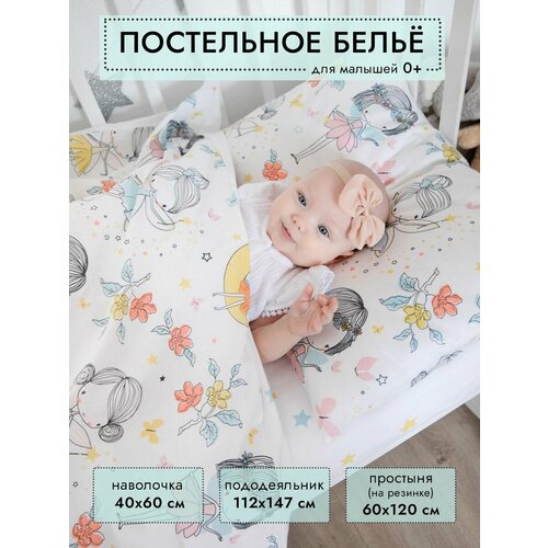 Постельное белье в кроватку для новорожденного поплин "Феи" Комплект постельного белья для девочки