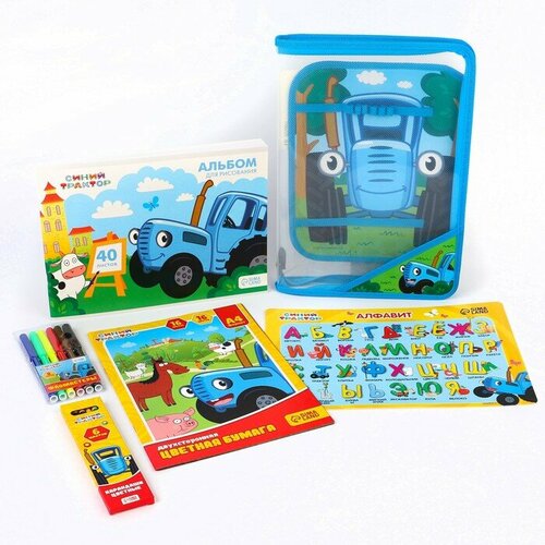 Подарочный набор в папке, 6 предметов, Синий трактор