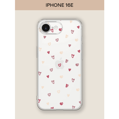Чехол на Apple iPhone 16e / Айфон 16е с принтом Рисунок из сердечек, прозрачный