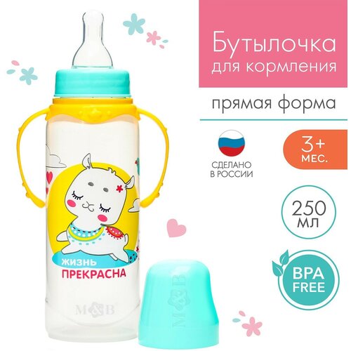 Бутылочка для кормления «тренд. Лама» 250 мл цилиндр, с ручками, цвет бирюзовый