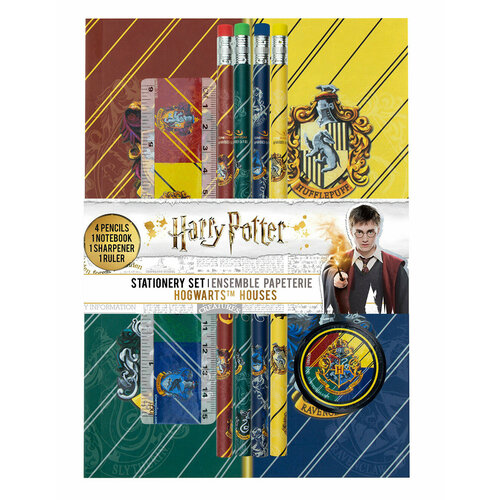 Набор канцелярии Cinereplicas Гарри Поттер (комплект 4 карандаша, блокнот, точилка, линейка) (Факультеты Хогвартса / Hogwarts Houses)