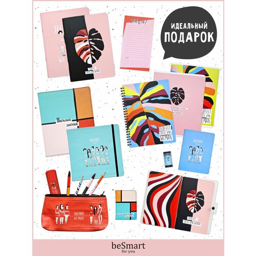 Подарочный набор тетрадей и канцелярии Be Smart: тетрадь А4 на спирали на 96л, блокнот 13*21 на 48л, ручка шариковая 2 шт.
