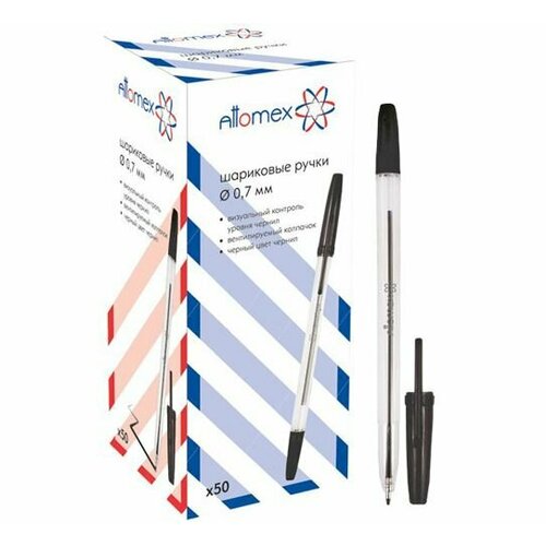 Ручка шариковая Attomex набор 50 штук, черная 0.7 мм