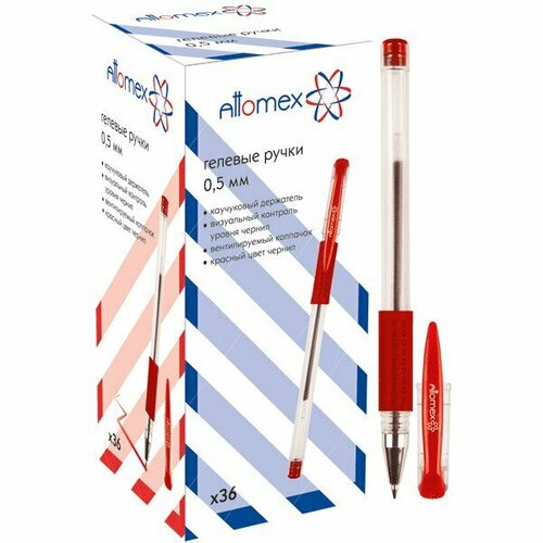 Ручка гелевая Attomex 0,5мм, каучук. держатель, красная 36 шт.